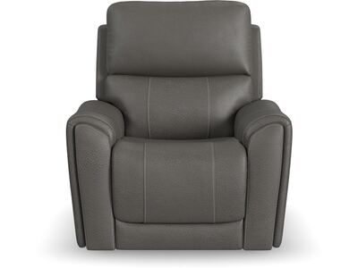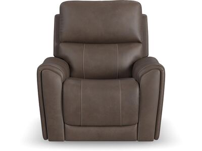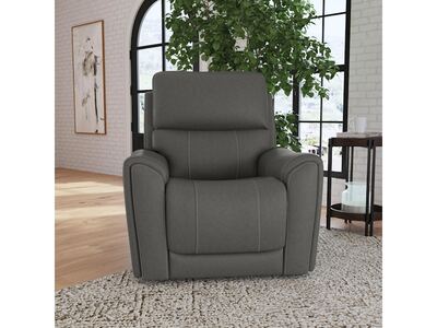 Power up and enjoy secretive perks with the Carter power recliner. Customize your comfort with adjustable recline, headrest and lumbar support, including reclining to a Zero Gravity position for a weightless experience, reducing pressure on joints. This recliner will be a statement in your home with its genuine leather look that is a durable, easy to clean fabric in a cappuccino brown color, and Flexsteel''s patented Blue Steel Spring™ at the heart of its seat for ultimate durability. Flared arms, a contoured seat and heavy thread stitching details give it a sleek, yet striking look. And it all comes with pop-out cupholders in the arms for discreet storage.
