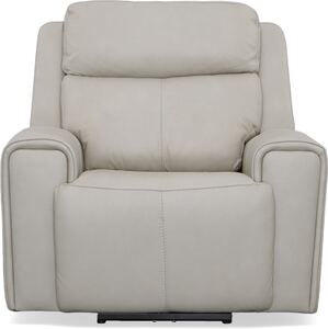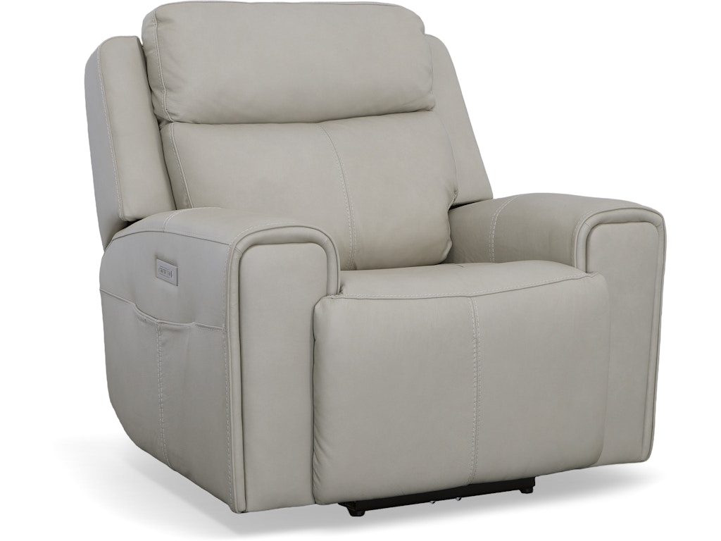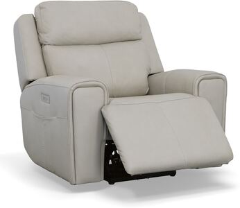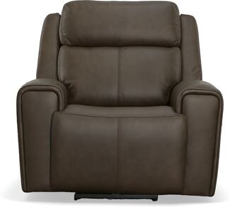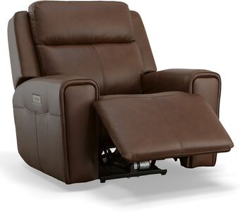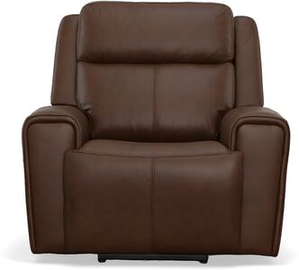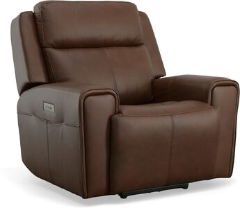 Recline into relaxation with the Barnett power recliner with power headrest and lumbar. As you lounge, our Zero Gravity recline technology cradles your body and gives you a feeling of weightlessness. Dial in your perfect level of comfort with a power control that independently adjusts the recline, headrest and lumbar for extra back support. For your convenience, the recliner features a USB charging port built into the power control to keep devices charged and a handy side pocket for storing remotes. A waterfall chaise takes pressure off tired legs, while a wide, contoured seat allows you to sit comfortably for as long as you like. Our patented Flexsteel DualFlex Spring System™ provides a pleasing mix of firmness and flexibility as you sit. And thoughtful enhancements, including wide track arms with durable top-stitching and attractive welt trim, give this recliner an elevated look. Finished in our premium top-grain leather, this recliner is sure to look good for years to come.