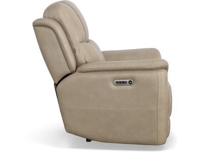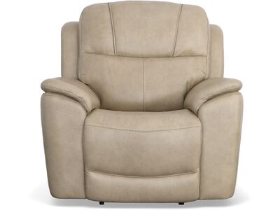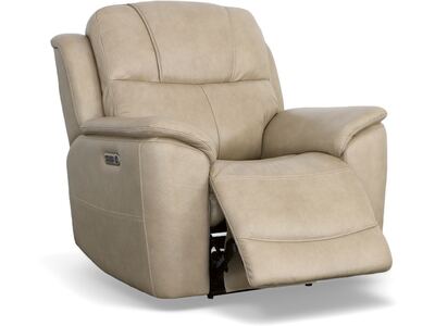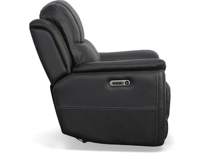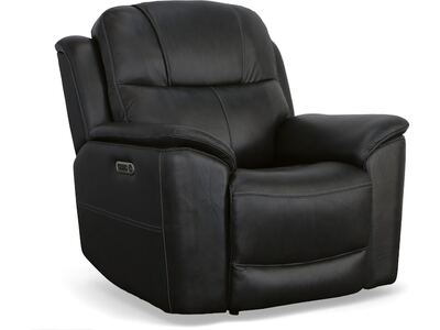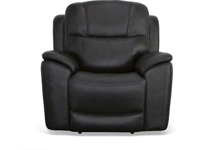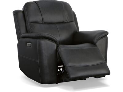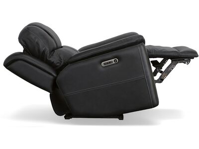 Superior ergonomics combine with the plush comfort of the Crew leather power recliner. Featuring triple power functionality that allows for independent adjustment of the headrest, lumbar support and recline, this recliner also features Zero Gravity which reduces pressure and tension on the body. Enjoy reliable comfort all day, every day, with pad-over armrests, a waterfall chaise footrest, a thin layered headrest, and divided back cushion. Built-in USB ports conveniently keep mobile devices charged and ready to stream your favorite shows. With Flexsteel''s patented Blue Steel Spring™ at the heart of the seat, and high-quality raven black leather, the Crew power recliner brings exceptional beauty and durability to your home.