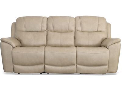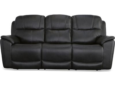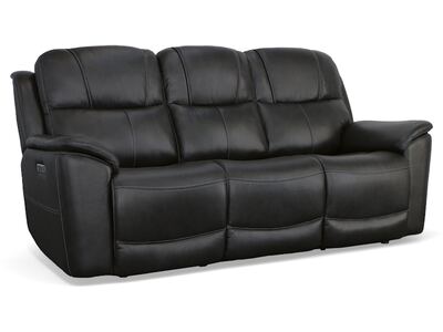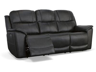 Superior ergonomics combine with the plush comfort of the Crew leather power reclining sofa. Featuring triple power functionality on the two outside seats that allows for independent adjustment of the headrests, lumbar supports and recline, this sofa also features Zero Gravity which reduces pressure and tension on the body. Enjoy reliable comfort all day, every day, with pad-over armrests, waterfall chaise footrests, thin layered headrests, and divided back cushions. Integrated power controls with built-in USB ports let you achieve your ideal relaxation position at the push of a button while conveniently charging your mobile devices. With Flexsteel''s patented Blue Steel Spring™ at the heart of each seat, and high-quality raven black leather, the Crew power reclining sofa brings exceptional beauty and durability to your home.
